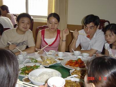 結束了路途的奔波,大伙兒該好好飽餐了。其實真不是這魚這肉好吃得不得了呀,只是此清遠一漂,TMD說不準就漂到何方做了美人魚,有得吃就多吃點吧,可以笑的時候就盡量逼真吧,日后的事......哎!兄弟姐妹們,開動吧!
