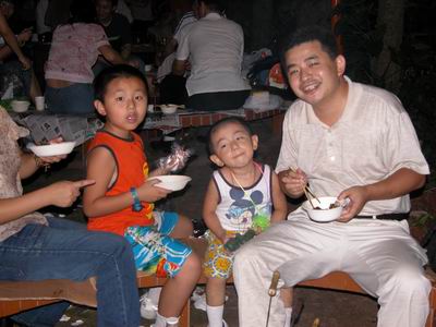 孫總連同家屬也出場了本次的慶;顒,看他們父子三人,吃得不亦樂乎!