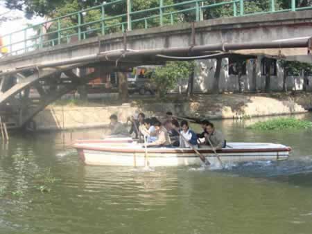 劃船比賽開始了,第一組有策略得想把第二組擠到一邊。