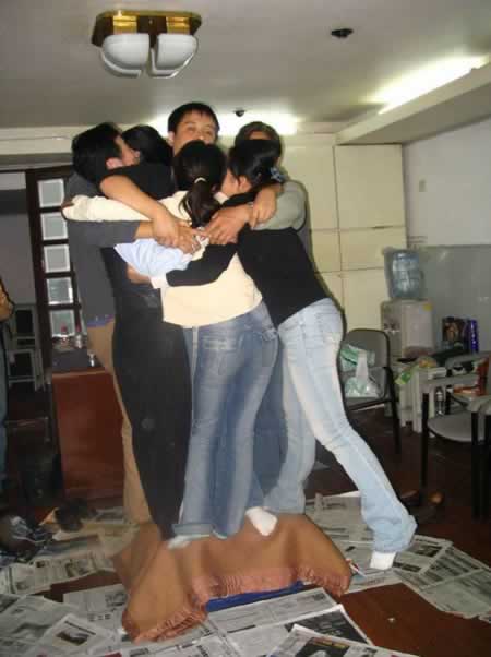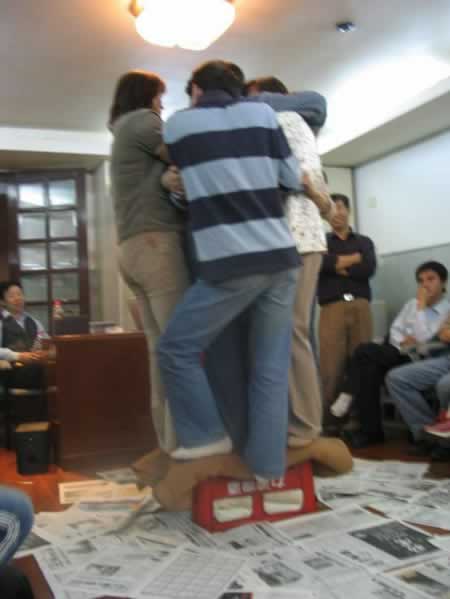 第二組的成員在組長的帶領(lǐng)下,全組成員團結(jié)一致,緊緊得抱在一起,堅持了20分鐘,取得了第一名。