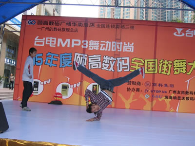 連續(xù)多日陰雨的廣州在4月2日這天奇跡般的晴朗,由商科集團(tuán)贊助的“臺電MP3 舞動時尚—全國街舞邀請賽”也在這天正式拉開帷幕。魔幻的舞步、激情的