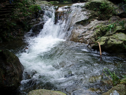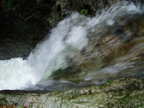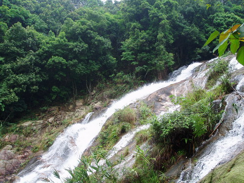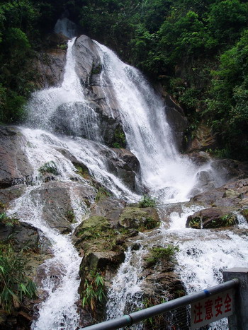 天后瀑,落差 80 多米,溪流飛湍而下,穿過(guò)元陰?kù)F,蔚為壯觀
