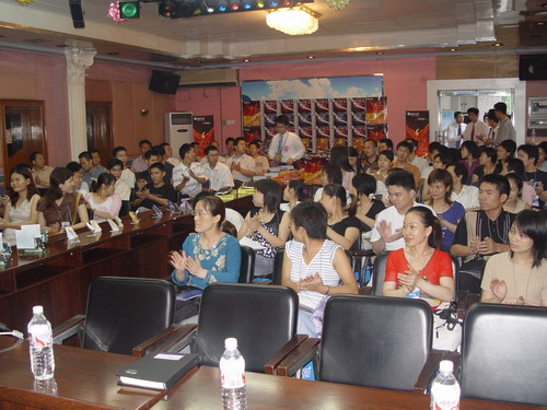 最讓人期待的是現(xiàn)場(chǎng)提問環(huán)節(jié),孫總和大家親密接觸,就大家關(guān)心的問題一一作出解答,經(jīng)銷商當(dāng)然不會(huì)放過(guò)這個(gè)機(jī)會(huì),提問一個(gè)接一個(gè),最后因?yàn)闀r(shí)間關(guān)系我們的帥哥主持不得不“殘忍”地結(jié)束提問環(huán)節(jié),把大家“趕”到餐廳共進(jìn)晚餐了.