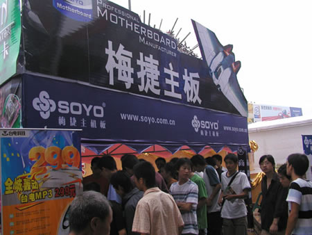 做為當天唯一一家板卡展示的廠商,我們的這次活動取得了非常好的產(chǎn)品形象宣傳效果,我公司的展示區(qū)人頭觸動,前來進行了解及購買的人絡(luò)繹不絕。我們的活動人員在這兩天里接待了大批前來進行主板和顯卡了解的消費者,并對其進行了詳細的產(chǎn)品介紹及購買指導(dǎo),得到了消費者普遍好評。