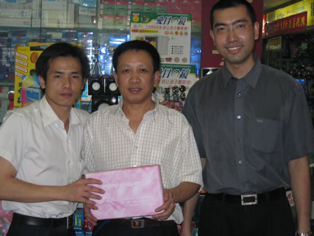 (圖一)廣分何舜民經(jīng)理親自為經(jīng)銷(xiāo)商獻(xiàn)禮