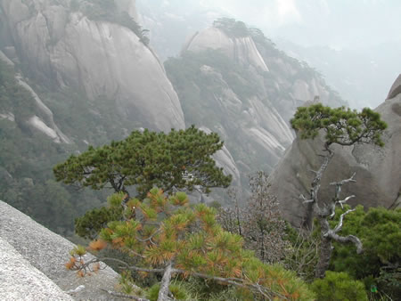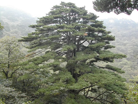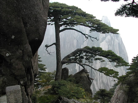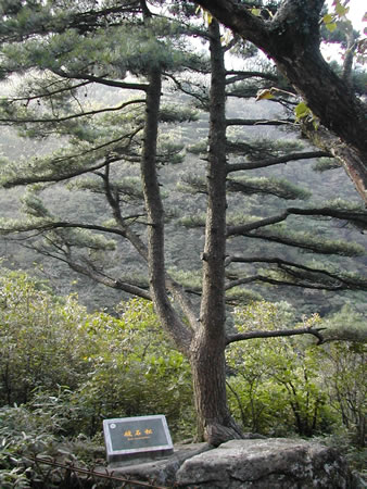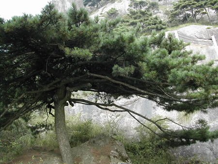 黃山除了山有名,松樹(shù)也是很有特色的,這棵就是有名的破石松。