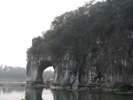 象鼻山地處桂林市的漓江與桃花江匯流處,園內(nèi)自然山水與人文景觀交相輝映,山、水、洞、亭、臺、坪,文物古跡相映成趣,美不勝收。因?yàn)橄笊娇崴埔活^大象,栩栩如生,因此被人們定為桂林市的象征。象山山體前部的水月洞彎如月亮,穿透山體,清澈的江水從洞中穿鼻而過,波光洞影構(gòu)成了“水底有明月,水中明月浮”的奇景,“象山水月”因此成為桂林山水一絕。