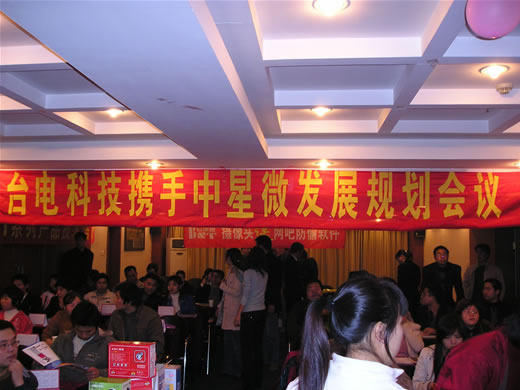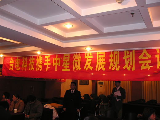 會議召開前奏,南昌分公司早早來到會場把“臺電攜手中星微發(fā)展規(guī)劃會議”的大橫幅掛在會場中間,搶占了至高點(diǎn),高手風(fēng)范。