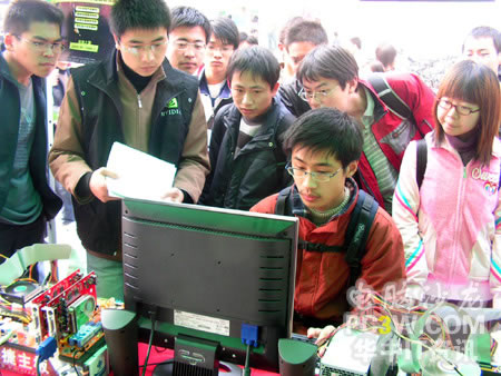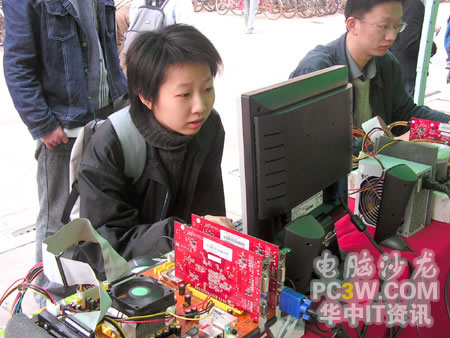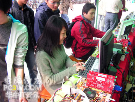 第一個進行SLI平臺體驗的竟然是一位MM,果然是巾幗不讓須眉啊?此炀毜耐嬷鴺O品飛車地下狂飆2,小編也不由感慨,這里不愧是華中地區(qū)最好的理工科學府啊,果真的臥虎藏龍。