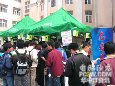 本次華中科技大學站的巡回展示設在人氣相對較旺的華科東區(qū)韻苑學生公寓內,整個演示區(qū)基本上沿襲了前兩站的風格,分為產品展示區(qū)及現(xiàn)場演示區(qū)。作為一所理工科為主的學校,這樣的展示自然吸引了不少同學駐足圍觀,一大早展臺還在緊張的布置之中,就有不少同學前來觀展及體驗。