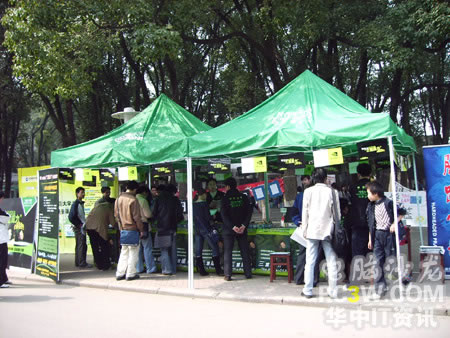 產(chǎn)品展示及現(xiàn)場演示區(qū)設(shè)在華中師范大學(xué)主校區(qū)學(xué)子餐廳門前。整個(gè)演示區(qū)基本上沿襲了上一站武漢大學(xué)站的風(fēng)格,分為產(chǎn)品展示區(qū)及現(xiàn)場演示區(qū)。