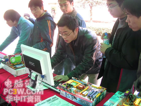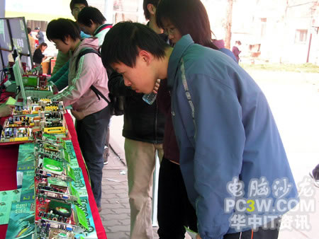 產(chǎn)品展示區(qū)的各款顯示卡吸引了不少過路同學(xué)的眼球,紛紛過來仔細(xì)觀看,并不時(shí)向工作人員咨詢產(chǎn)品細(xì)節(jié)。