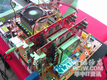作為NVIDIA從去年來就大力推廣的SLI技術(shù)自然是最能吸引大家注意的,不少同學(xué)都對(duì)這種雙卡并聯(lián)技術(shù)產(chǎn)生了濃厚的興趣。工作人員也對(duì)SLI的一些具體細(xì)節(jié)進(jìn)行了詳實(shí)而周到的解釋。
