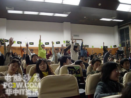 在產(chǎn)品演示區(qū)的另一端,路過的同學(xué)們紛紛過來填寫問卷調(diào)查,從自己的感受出發(fā),表達(dá)自己對(duì)顯卡的具體想法和個(gè)人選擇。