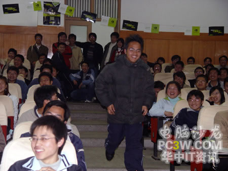 這為中獎(jiǎng)的同學(xué)一片狂喜,從最后一拍沖上臺(tái)領(lǐng)獎(jiǎng),獎(jiǎng)品為商科集團(tuán)武漢天行電腦提供的臺(tái)電攝像頭一個(gè)。