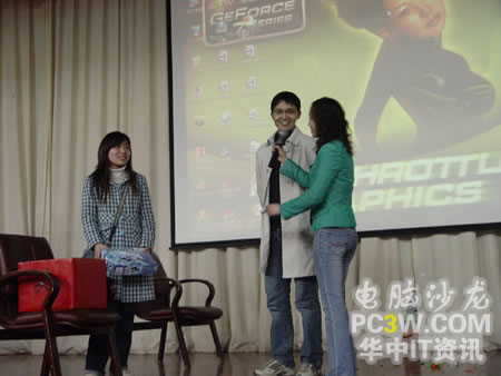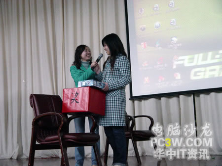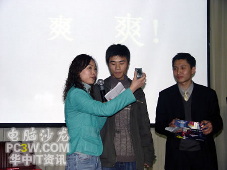 接下來,商科集團(tuán)武漢天行電腦市場(chǎng)部涂嵐女士抽出了今天晚上活動(dòng)的二等獎(jiǎng),臺(tái)電MP3。