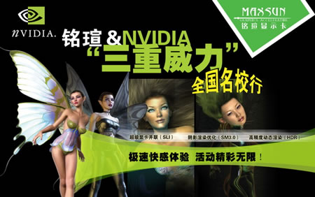 全球最大的顯示芯片供應(yīng)商之一的NVIDIA早已家喻戶曉,而銘瑄顯卡是國內(nèi)最大的顯卡品牌之一,長(zhǎng)期以來雙方一直保持著良好的合作關(guān)系,此次再度合作舉行校園巡展活動(dòng),正是“三重威力”先進(jìn)顯示技術(shù)推廣的延續(xù)。