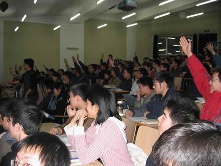 (圖14)不時會有有獎?chuàng)尨穑瑢W(xué)們非常踴躍,看來都聽得很認(rèn)真