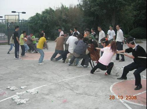拔河賽:每隊基礎(chǔ)扎實,拼勁全力,誓要把對方拉向那條“地雷線”