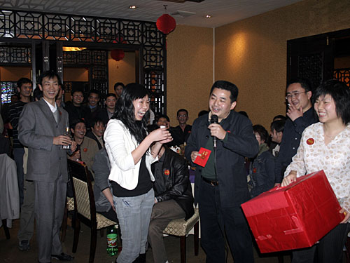 公司領(lǐng)導(dǎo)現(xiàn)場增加了許多現(xiàn)金大獎,將會場氣氛推到高潮