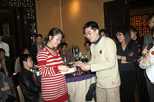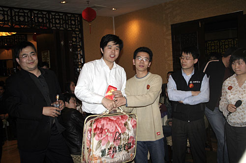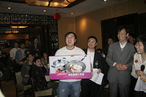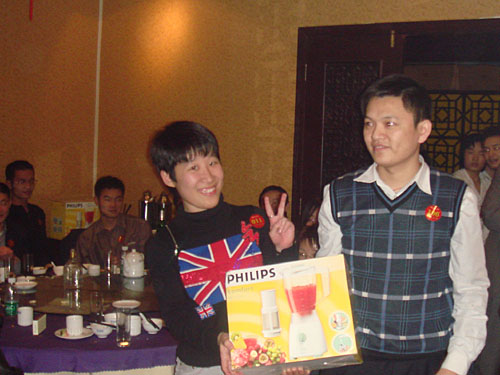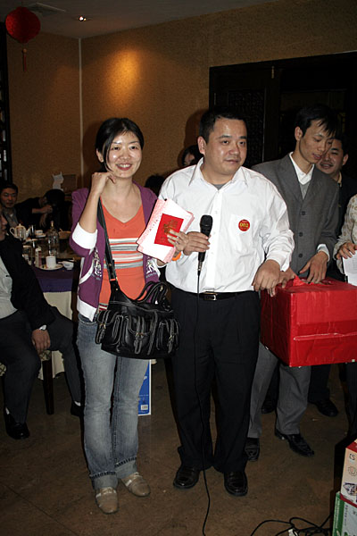 晚宴結(jié)束后,大會的最令人興奮的抽獎活動便拉開了帷幕。公司為本次大會準(zhǔn)備包括現(xiàn)金大獎、名牌手表、高檔化妝品,小家電、數(shù)碼MP3、U盤在內(nèi)的豐富獎品。