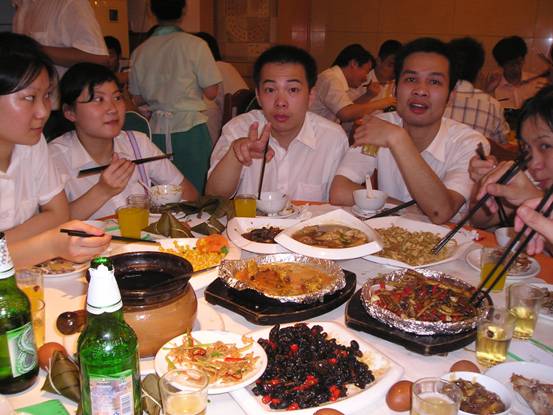 人都到齊了,怎么還沒(méi)有上菜。縼(lái),我們先干一杯“祝大家端午節(jié)快樂(lè)”!