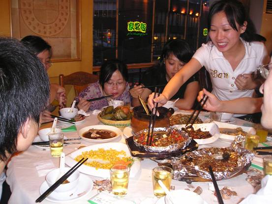 呵呵,這個(gè)菜好吃,不管什么淑女形象了,我要站起來(lái)多夾點(diǎn)!