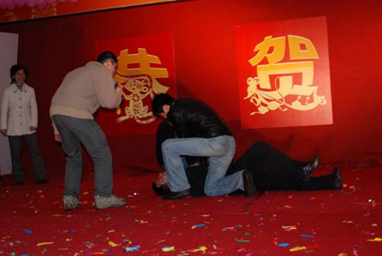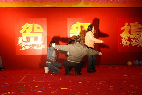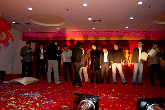 由每桌自愿上臺的同事來為大家進(jìn)行表演。