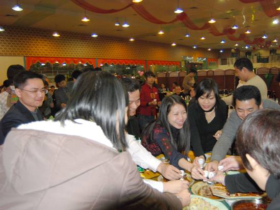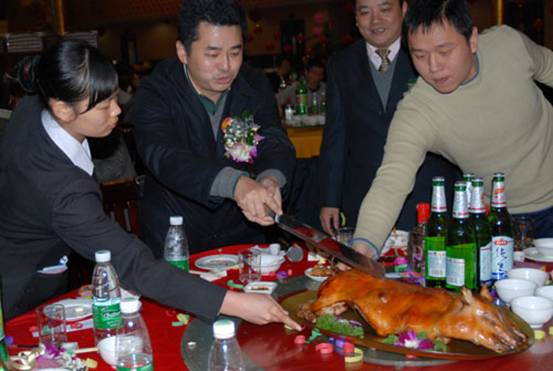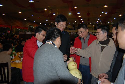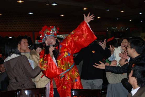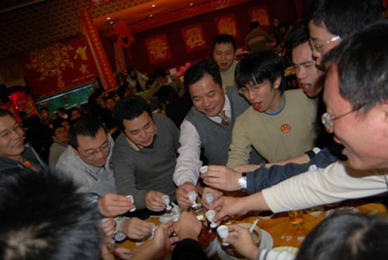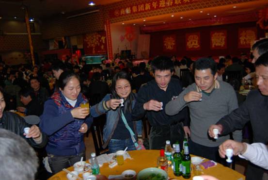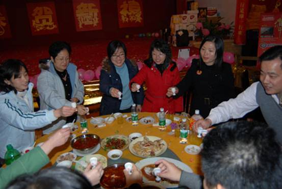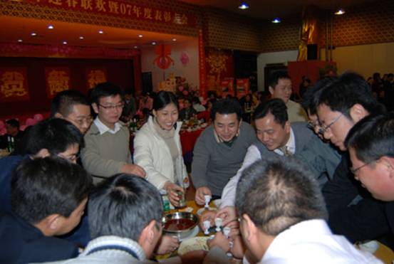 不知不覺兩個(gè)多小時(shí)已經(jīng)過去了,在同事們快樂的笑聲中,游戲節(jié)目圓滿結(jié)束了。大家大概也都饑腸轆轆了,公司為全體員工準(zhǔn)備了豐盛的晚宴享用,大餐開始了。