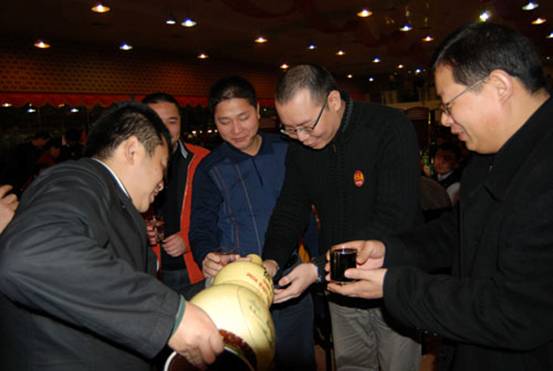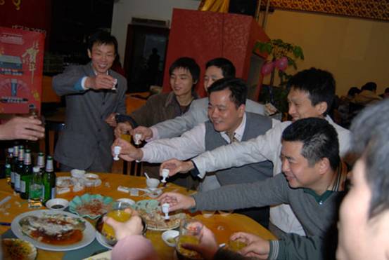公司領(lǐng)導(dǎo)為同事們敬酒