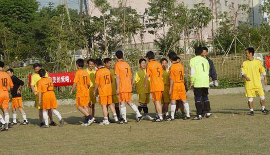 近日,商科足球隊應(yīng)邀去參加一場足球友誼賽,3點半到達目的地,換好隊服,做做準備活動擺擺陣勢?矗炭频男』镒痈鱾精神抖擻,雖是客場做戰(zhàn),氣勢也不讓分毫。悄悄的說,老總親自帶隊自然底氣十足。再看,主場的帥哥也不耐,各個摩拳擦掌躍躍欲試?礃幼咏裉斓谋荣愵H有看頭。
