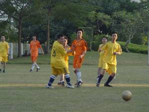 經(jīng)歷90分鐘的激烈拼殺,一場精彩的友誼賽在霞光中完美結(jié)束,主客場隊員都盡興而歸。