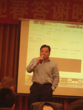 首先是總經(jīng)理孫武源先生的致辭。回顧2008,展望2009,他表示09年是一個機遇和挑戰(zhàn)并存的一年,在09年,商科要把步伐邁的更大.更穩(wěn)一些,利用現(xiàn)在的大環(huán)境,牢牢的把握這個機會,從逆鏡中擴大公司在行業(yè)的影響力,以最好的支持為合作伙伴服務(wù)!