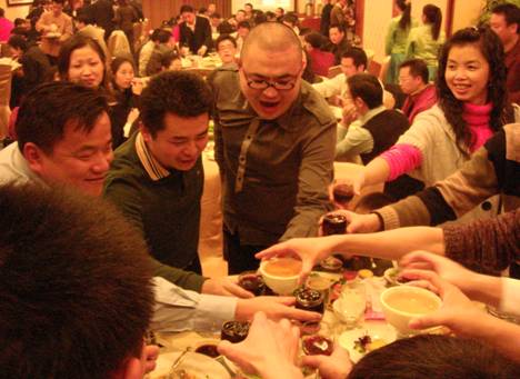 晚會的第二波高潮開始了,孫武源先生和劉險峰先生逐一為各代理商敬酒。