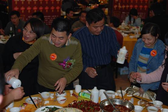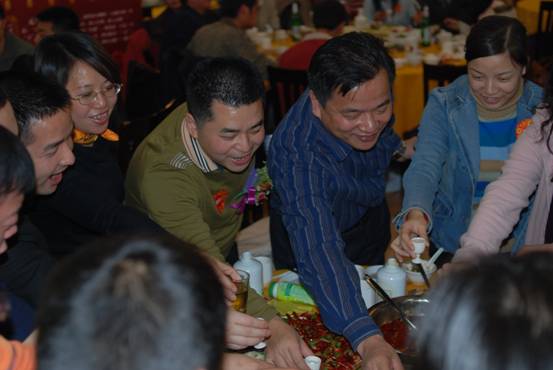 經(jīng)過2小多小時(shí)的文藝表演與游戲后,大家已經(jīng)饑腸轆轆,公司領(lǐng)導(dǎo)宣布晚宴正式開始,首先公司領(lǐng)導(dǎo)層向大家祝福。