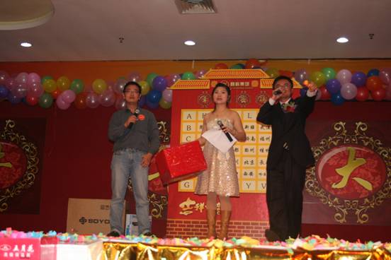 經(jīng)過了7個(gè)小時(shí)的文藝表演、游戲、晚宴、抽獎(jiǎng)等環(huán)節(jié),商科集團(tuán)迎春晚會(huì)暨08年表彰大會(huì)終于圓滿結(jié)束了。