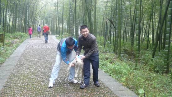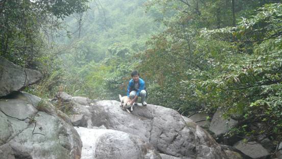 這個狗狗,我們給他取名叫做小白,小白還有一個兄弟姐妹叫做小黑,它們一直陪著我們上到了山上,可是小黑不愿意跟我們合照,不知道是不是小黑覺得我們當(dāng)中沒有一個帥哥、美女。