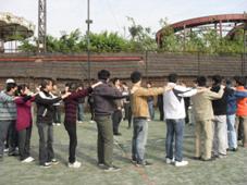 第三環(huán)節(jié)(“大團(tuán)體”協(xié)作):繩圈力量。糅合了各個(gè)小組,更加講究成員間的合作、協(xié)調(diào),一環(huán)扣一環(huán),環(huán)環(huán)緊扣。