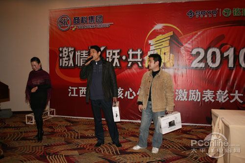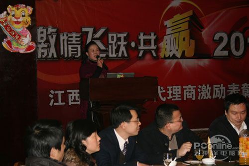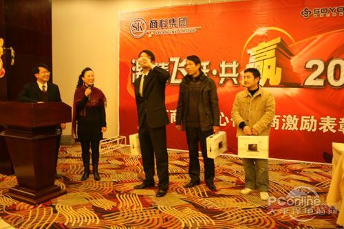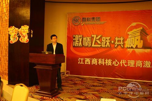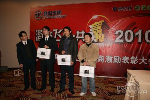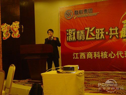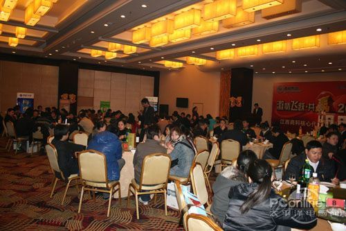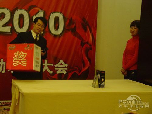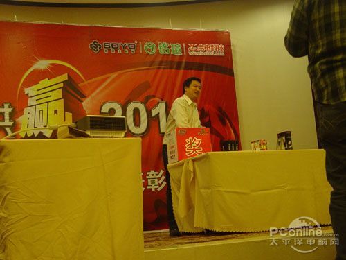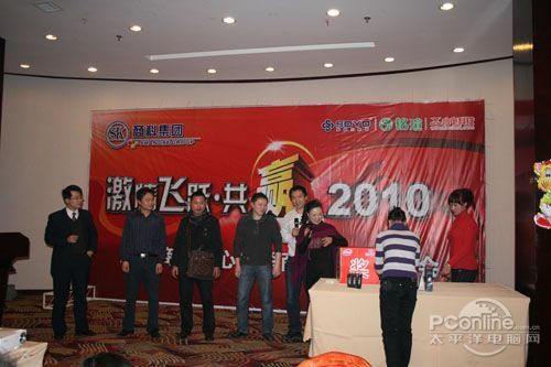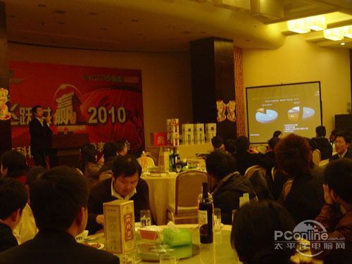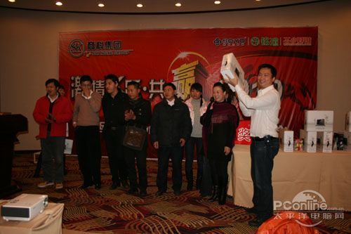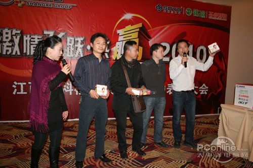 本次會議有眾多經(jīng)銷商應(yīng)邀赴會,更有來自NVIDIA和intel的嘉賓光臨現(xiàn)場,其中包括來自NVIDIA公司的彭華先生,以及INTEL公司的吳偉先生。而我們太平洋電腦網(wǎng)江西站作為到會的媒體代表,也被作為嘉賓介紹給大家。與上面的幾位重量級人物一起被主持人隆重介紹給廣大商家,筆者實(shí)在是感到有點(diǎn)汗顏!會議首先由NVIDIA公司的彭華先生為大家介紹阿凡達(dá)與NVIDIA的淵源(原來《阿凡達(dá)》出色的CG效果可是由NVIDIA的顯卡打造而成的)以及NVIDIA公司的新技術(shù)與政策。然后再由江西商科總經(jīng)理吳暉先生講話,再后就是對2009年度成績突出的商科合作伙伴進(jìn)行表彰頒獎(jiǎng)(獎(jiǎng)品非常豐厚哦,竟然是臺電上網(wǎng)本)。最后就是激動全場的抽獎(jiǎng)活動了!
