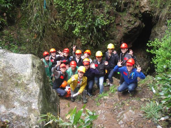 經(jīng)過艱難的挑戰(zhàn),大家在洞里露出了勝利的微笑。