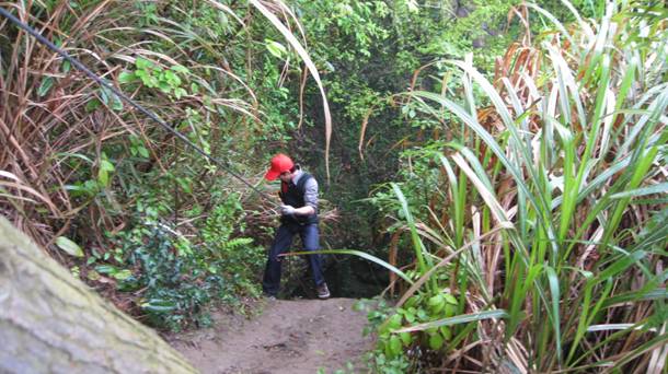 在山上經(jīng)過簡短的休整,我們繼續(xù)挑戰(zhàn)臥龍洞。這是一個半開放狀態(tài)的崖洞,在水流湍急的地方架起了一些竹橋,大家還是非常自覺的互相幫助,只聽到洞里不斷傳來:“當(dāng)心頭。。。這里滑。。。褲腳要卷高些,這里水急。。。當(dāng)心。。!钡鹊鹊奶嵝崖。冰冷的泉水穿過腳踝,大家全濕了鞋,但心里的溫暖遠(yuǎn)遠(yuǎn)超過身體的溫度。