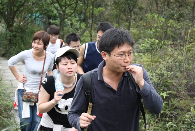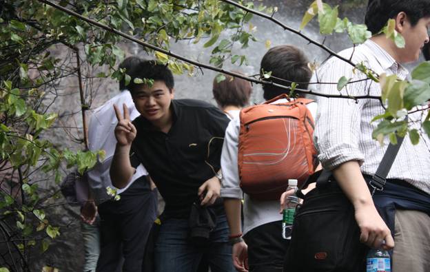 經(jīng)過(guò)一番跋山涉水,大家終于爬到了白水寨的9999級(jí)(最高點(diǎn)哦。蠹覔纹鹦δ樍粝轮档抿湴恋谋砬。大家看看大汗淋漓、筋疲力盡的我們,是不是都很棒。ㄕ坡ING)