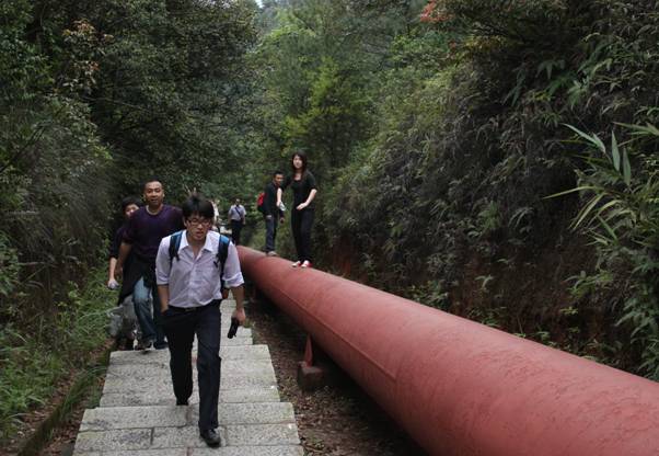 蜿蜒的山路,濕潤(rùn)的石板,大家小心翼翼的爬著山路。