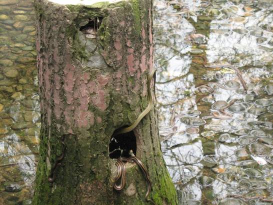 海瑞祠 隨后我們又來到了最后一站蛇島。大部分人對蛇比較畏懼,島上有劇毒的眼鏡蛇,竹青蛇,五步蛇,也有常見的無毒蛇,金環(huán)蛇,更有大大的蟒蛇。同事的女兒萱萱和大蟒蛇拍照了,膽子可真不小,隨行人員也只有這個小不點敢與蟒蛇合影。