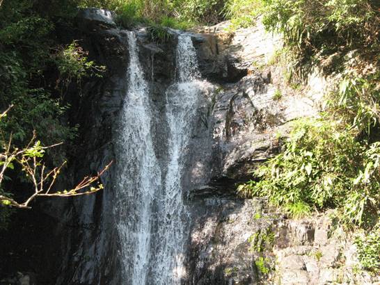 一線瀑 前行數(shù)米,老遠(yuǎn)就聽見驚天動地的“雷”聲,走近了才知那瀑布隱藏在一個巨大的石洞內(nèi),像龍嘴里吐出的白練,故稱之為龍喉瀑,上游之水如游龍一般通過一個跌巖穿入一個石縫,在石縫窟窿里形成一個“之”字形瀑布,因有石洞包圍,垂落下來時,其聲如虎狼咆哮,真是壯觀和驚心動魄。