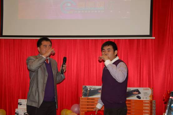 節(jié)目熱鬧非凡的進(jìn)行著,偶爾穿插的有獎(jiǎng)問答.腦筋急轉(zhuǎn)彎活躍著現(xiàn)場(chǎng)氣氛,公司為經(jīng)銷商特別準(zhǔn)備的三、二、一等獎(jiǎng)也不斷揭曉;