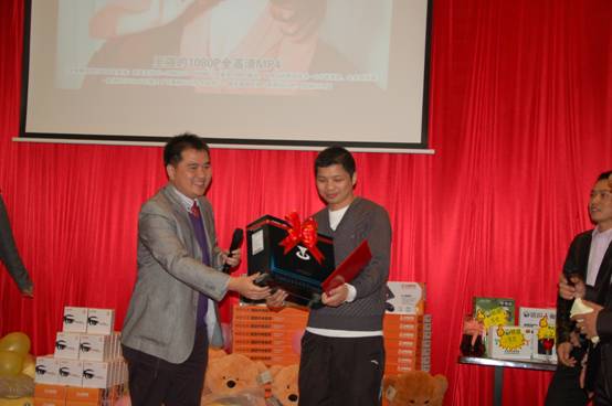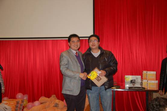 深圳分公司余經(jīng)理上臺(tái)為晚宴抽取了五名三等獎(jiǎng),獎(jiǎng)品分別為梅捷主板一塊、銘瑄主板一塊、銘瑄顯卡一塊、臺(tái)電移動(dòng)硬盤一個(gè)、臺(tái)電MP4一臺(tái);