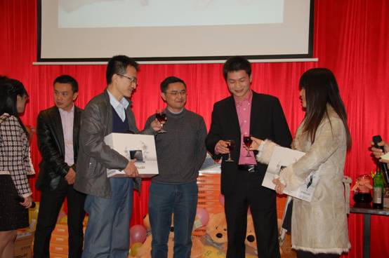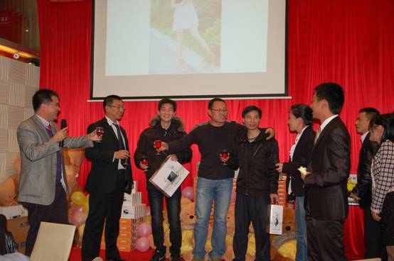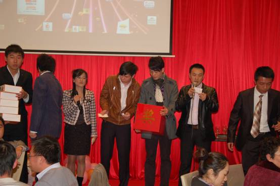 晚宴現(xiàn)場(chǎng)還同時(shí)進(jìn)行了抽獎(jiǎng)活動(dòng),獎(jiǎng)品尤其豐厚,總部產(chǎn)品事業(yè)部趙愛軍經(jīng)理。賈慶楓經(jīng)理上臺(tái)抽取四個(gè)特別獎(jiǎng),并為獲獎(jiǎng)?wù)哳C發(fā)獎(jiǎng)品;