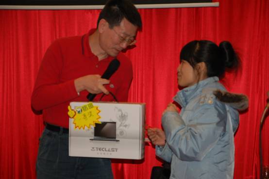 隋振遠(yuǎn)先生上臺(tái)為晚宴抽取一等獎(jiǎng)一名,獎(jiǎng)品為臺(tái)電筆記本一臺(tái);