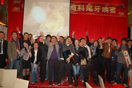 晚宴進(jìn)入最后高潮,商科各位公司同仁一起上臺(tái)答謝經(jīng)銷商朋友,并高唱<<朋友>>,在歌聲中緩緩落下帷幕。。。